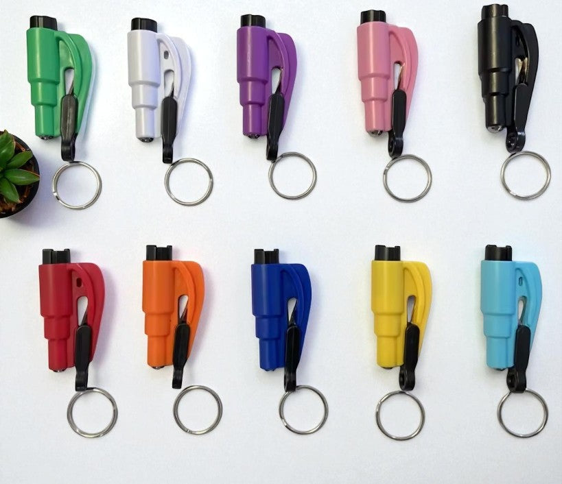 - The car window breaker keychain includes: car window breaker, seatbelt cutter.