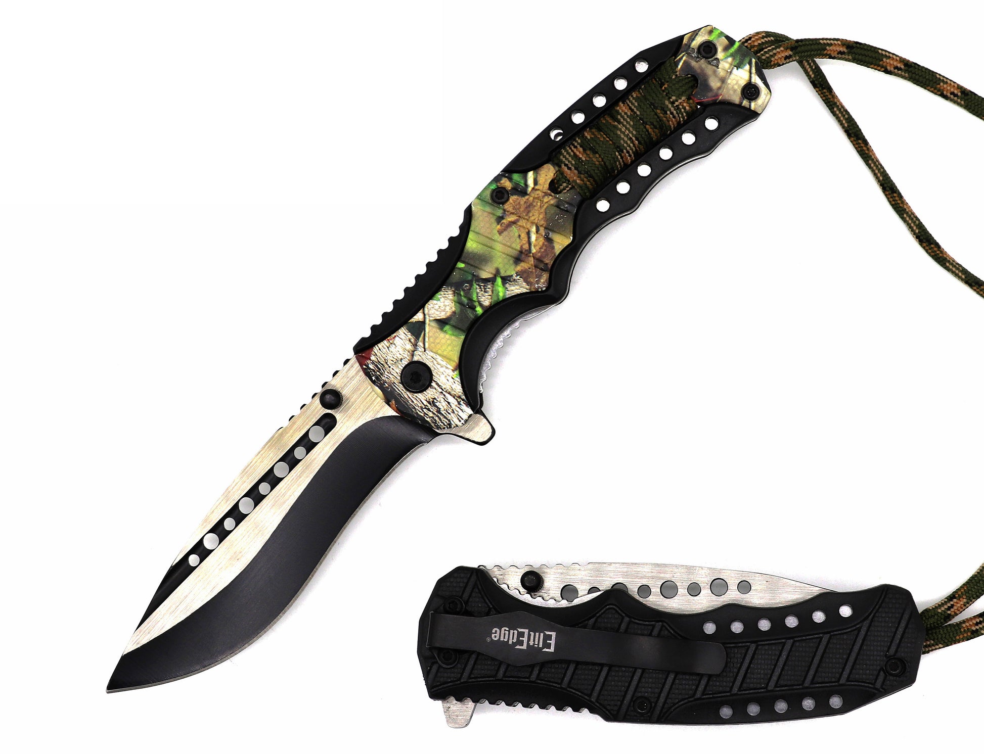 4.5" Closed Camo Spring Assisted Pocket Knife - Tactical Paracord