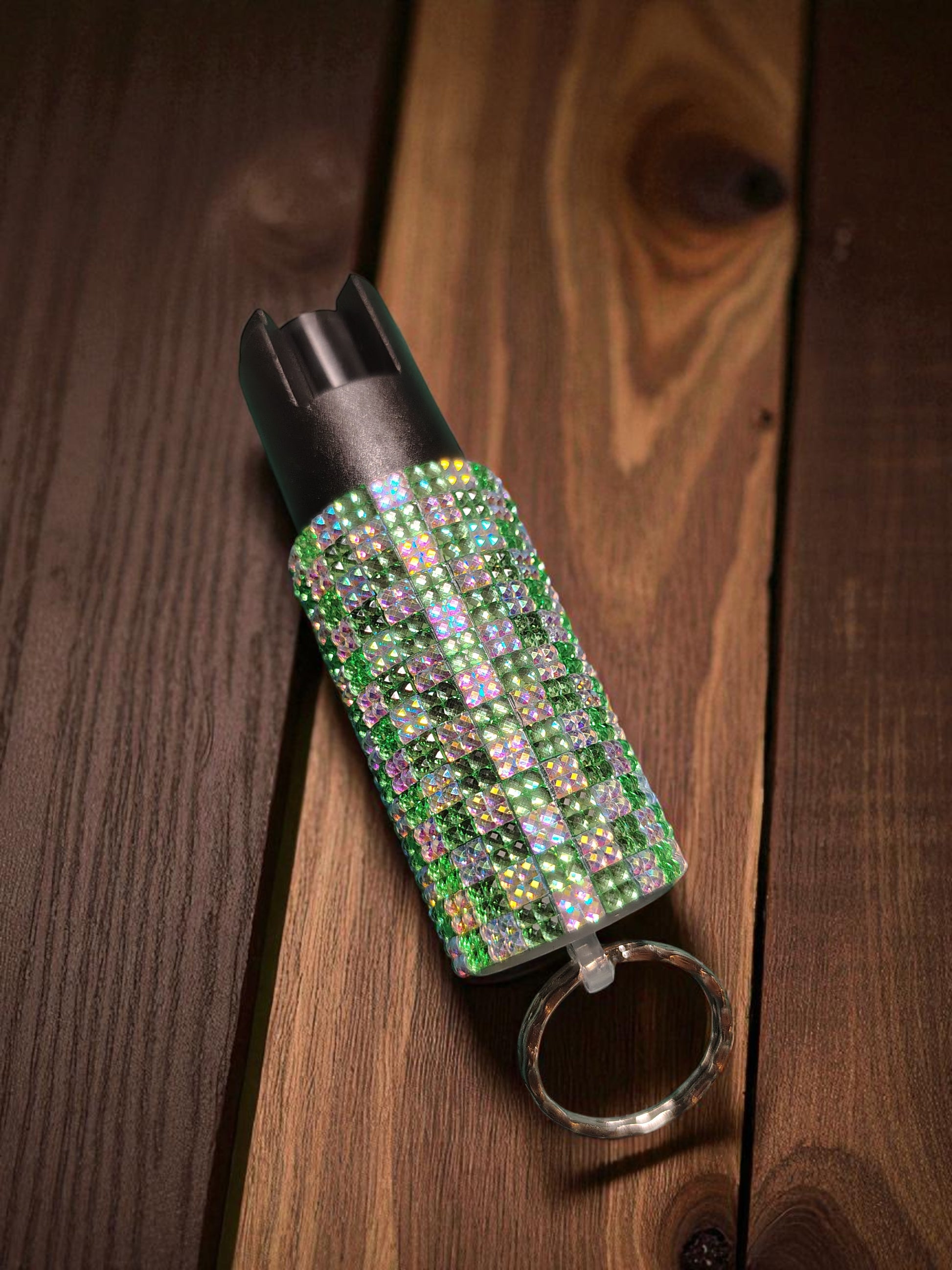 Stylish rhinestone design that turns your defense spray into a fashionable accessory, making it the best pepper spray for women, men, and night shift workers.