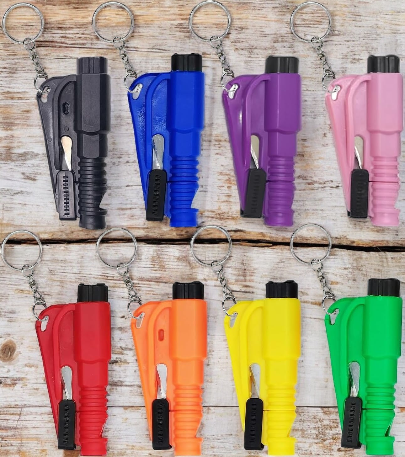 - he car window breaker keychain includes: car window breaker, seatbelt cutter, whistle. In the event of an accident or other emergency, the glass breaker can quickly break the glass of the car side window, the seatbelt cutter cuts off the stuck owner's seatbelt in 1s, and the rescue whistle can provide up to 80 decibel dB sound power, enough to be heard over half mile away. Works great as distress whistle.