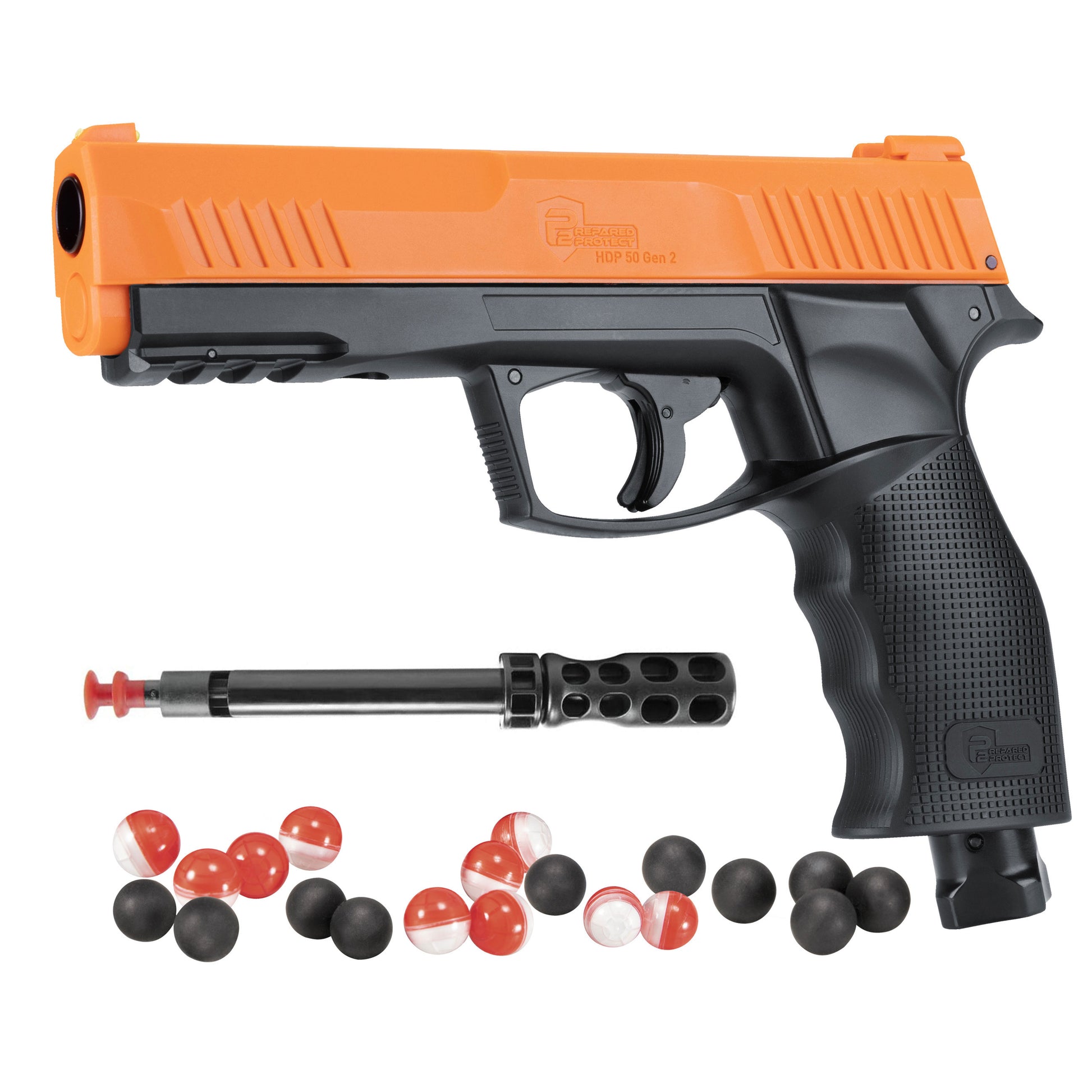 It has been re-engineered for optimal performance. Powered by compressed air (CO2), the T4E HDP P2P Self Defense Pepper Pistol shoots .50 caliber round kinetic and/or chemical irritant projectiles that can disable a threat from up to 60-feet away. It is an incredibly powerful and non-lethal self-defense weapon. Be Prepared to Protect™ your family, your property, and your life with this .50 caliber pepper pistol.